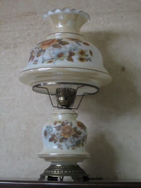 - アメリカ製 手吹きガラス オイルランプ型 2灯式 スタンドランプ H65㎝/照明/ライト/ロココ/西洋/アンティーク