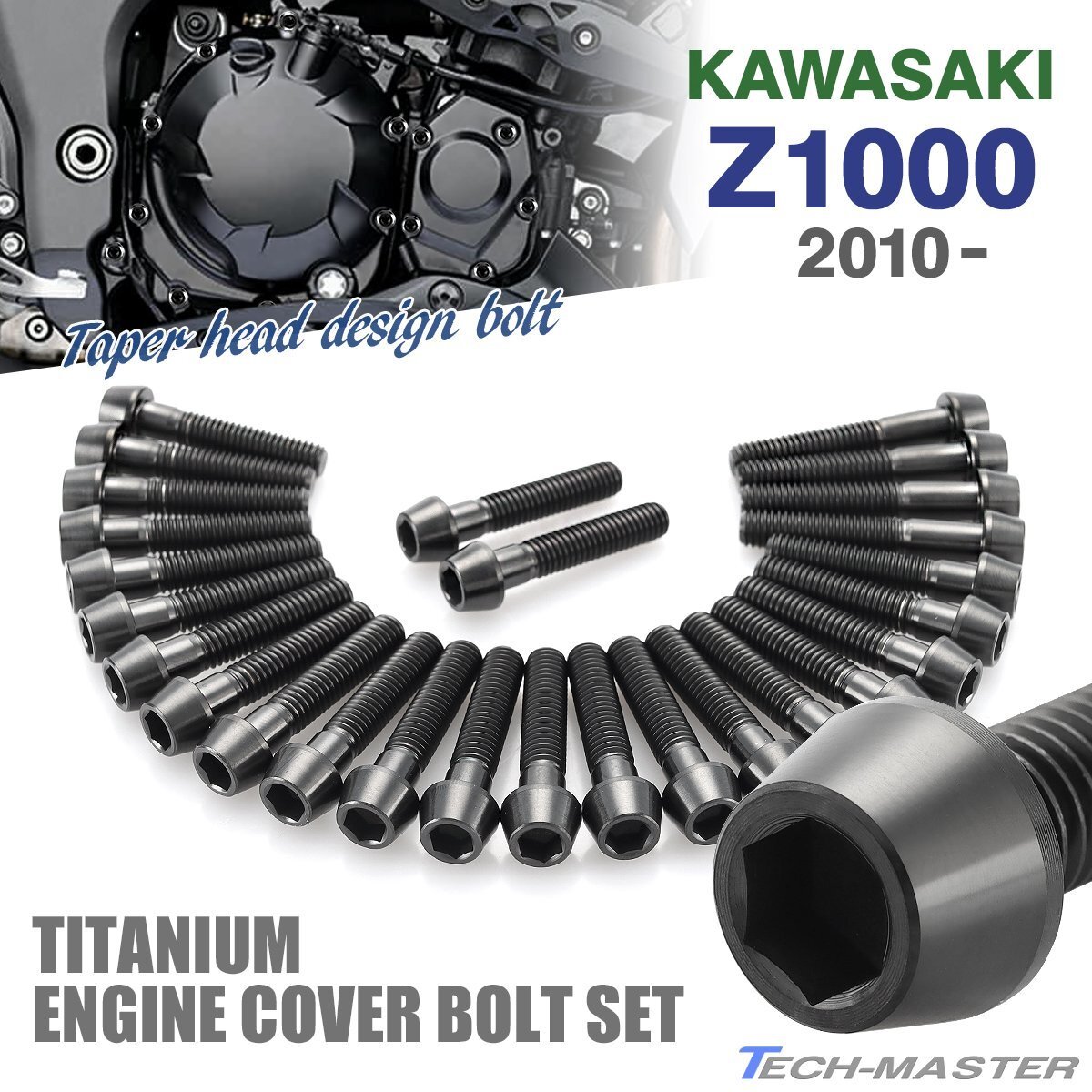 > Z1000 2010年~ エンジンカバー クランクケース ボルト 27本セット チタン製 テーパーヘッド ブラック JA8580