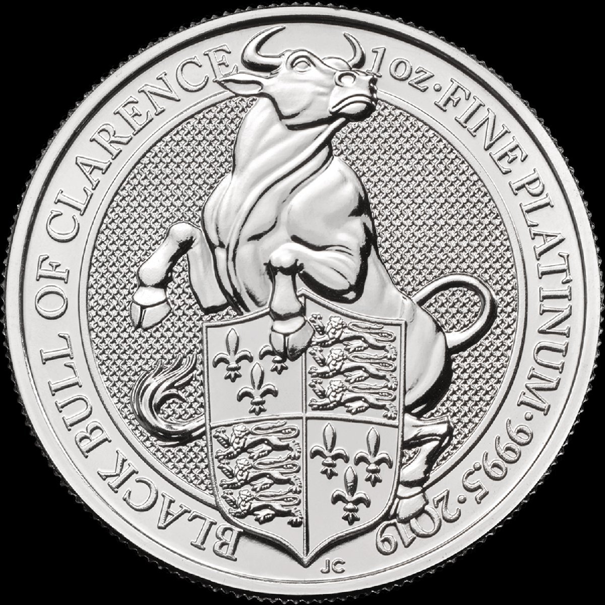 > [保証書・カプセル付き] 2019年 (新品) イギリス「クィーンズ ビースト・クラレンスの黒い雄牛」純プラチナ 1オンス プラチナ貨