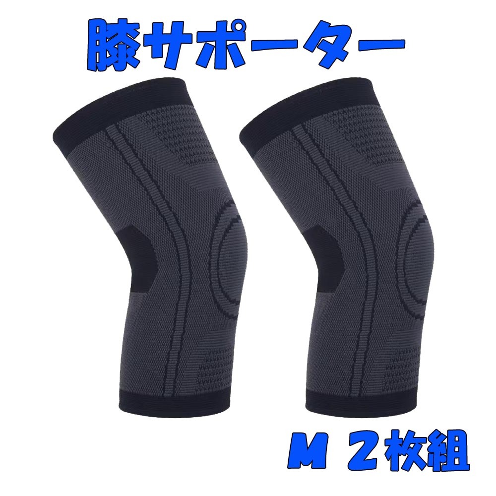 - 膝サポーター 膝 サポーター 関節靱帯 通気性 ブラック 黒 M 2枚セット