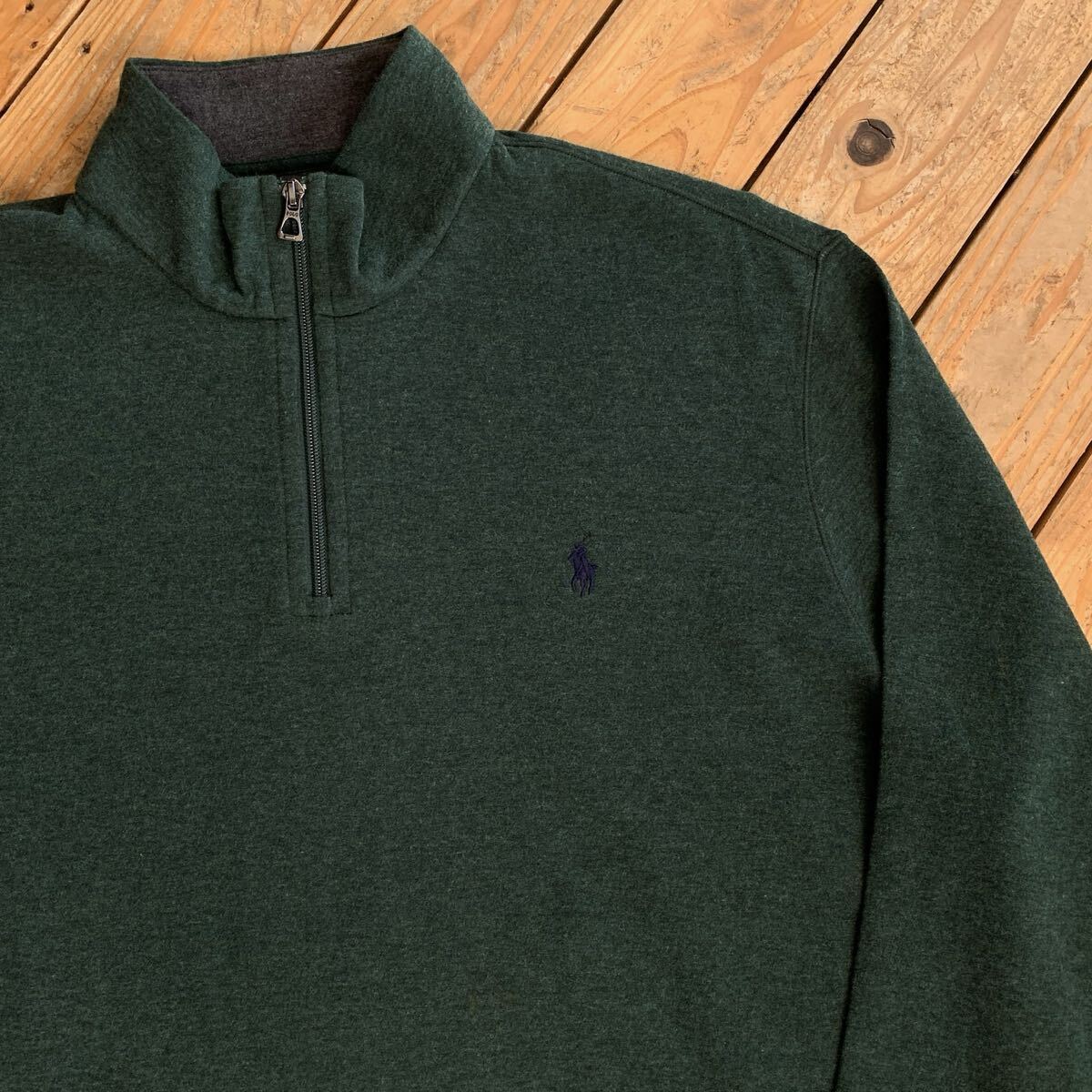 - USA古着 Polo ポロ ラルフローレン Ralph Lauren ハーフジップ スウェット メンズ XLサイズ グリーン カジュアル トレーナー S0967