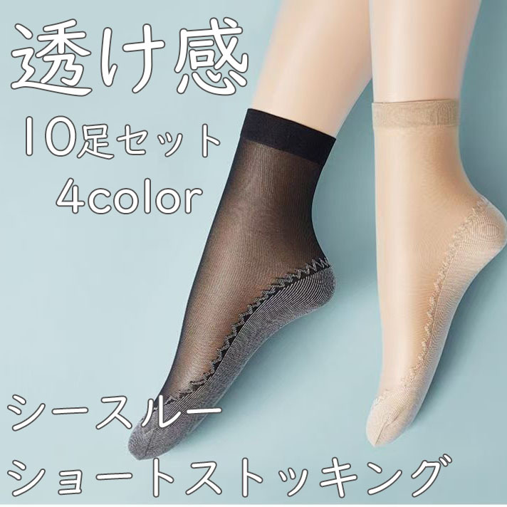 - シースルー ソックス 10足セット ストッキング 靴下 くるぶし ショート 透け感 かわいい 大人 可愛い おしゃれ 薄手