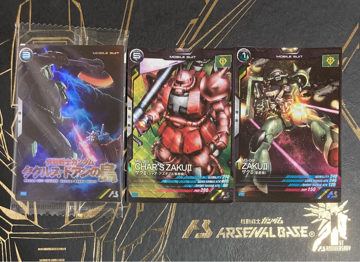 - ガンダムアーセナルベース 機動戦士ガンダム プロモ ククルスドアンの島 ザク2 シャア アズナブル 専用機 3枚セット