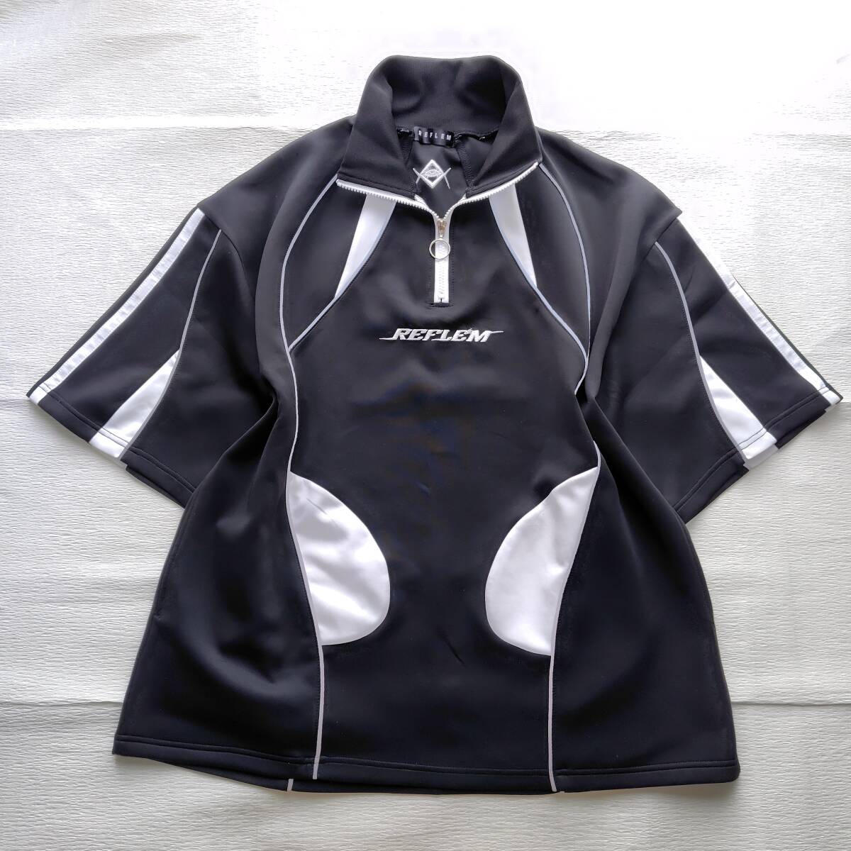 - REFLEM レフレム アーチ切替ハーフジップTEE 黒 スタンド襟 250721-03