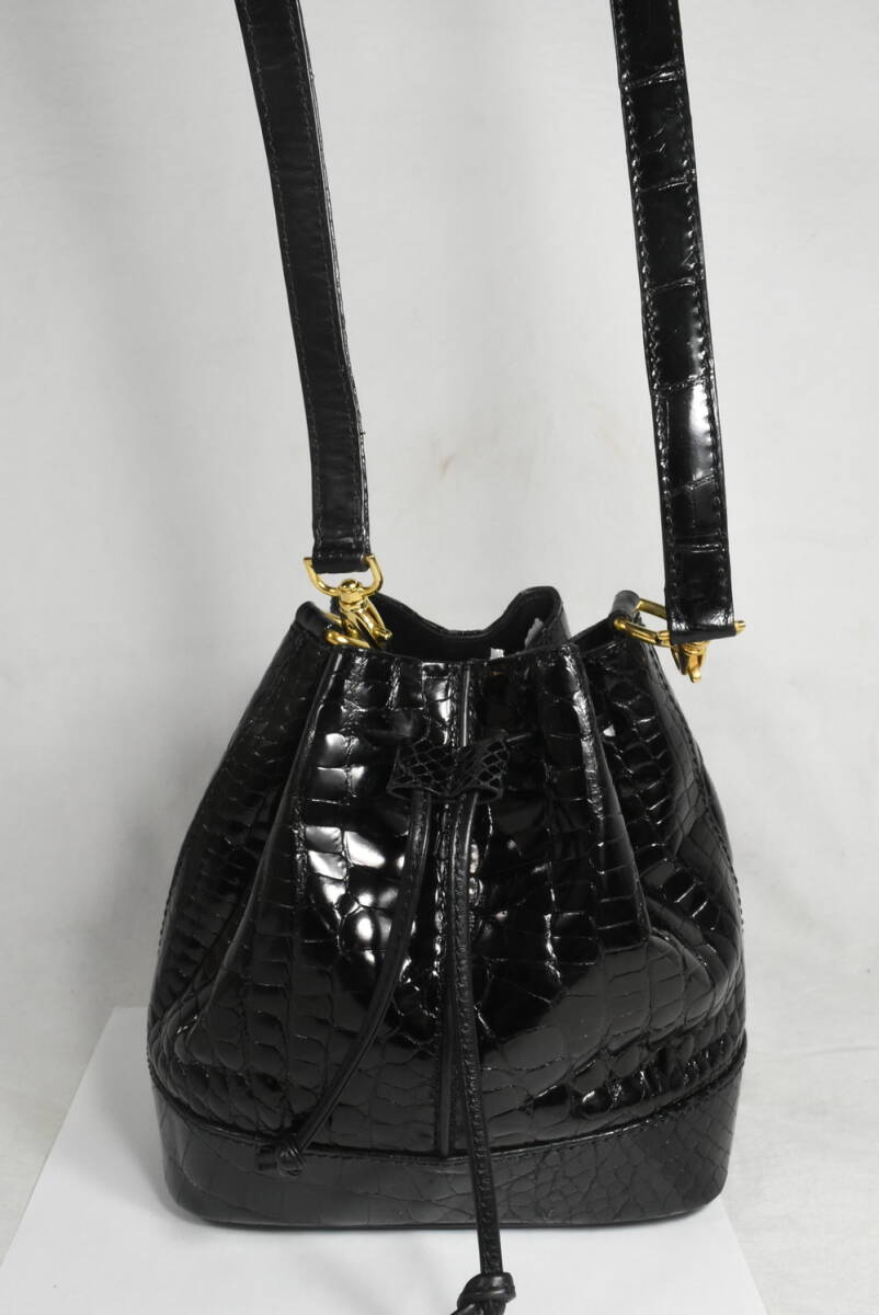 - G.BORRI ジーボリー 巾着 バケツ型 ショルダーバッグ クロコ 型押し