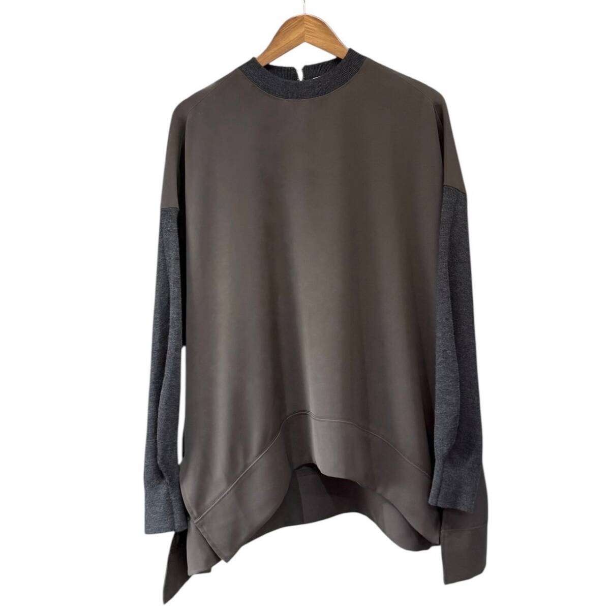 > ENFOLD エンフォルド 22AW CURVE-HEM KNIT SLEEVE PULLOVER ニットスリーブオーバーサイズカットソー 300FA270-2700 38 ブラウン 14804