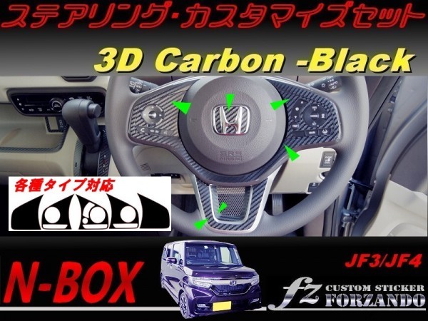 - N-BOX ステアリングカスタマイズセット 3Dカーボン調 ブラック 車種別カット済みステッカー専門店 fz JF3 JF4 custom
