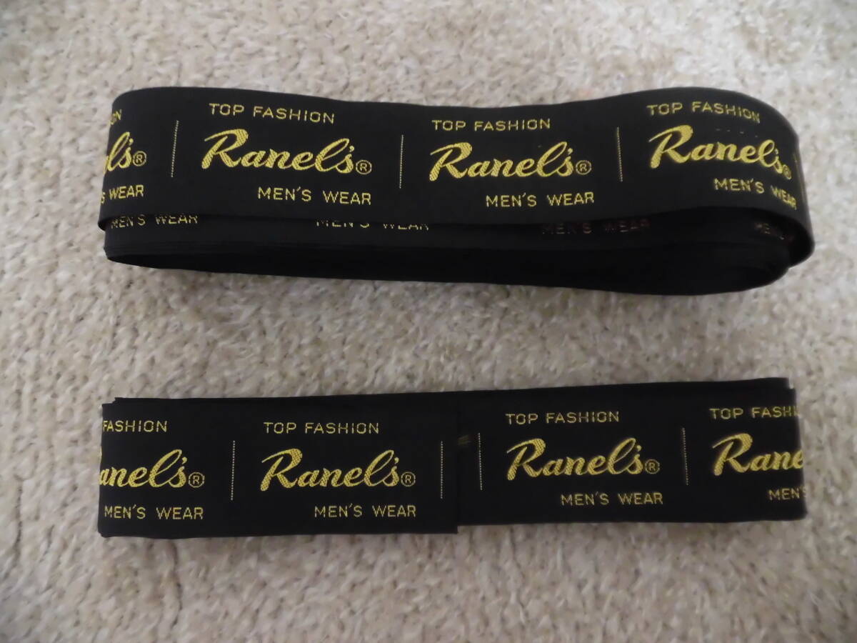 - 現状品 はんぱもの★昭和レトロ ★タグ レトロタグ TOP FASHION Ranel’s MEN’S WEAR 布タグ 黒 金文字★2本