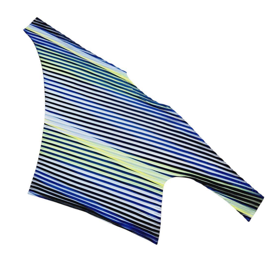 > 未使用品級 イッセイミヤケ 変形アシンメトリー ボーダー カットソー トップス 長袖 九分袖 PLEATS PLEASE ISSEY MIYAKE プリーツプリーズ