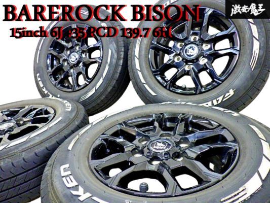 - 【美品!】KIT JAPAN BAREROCK BISON ベアロックバイソン 15インチ 6J +35 PCD 139.7 6H 195/80R15LT タイヤ 付 ホイール 4本 棚37D