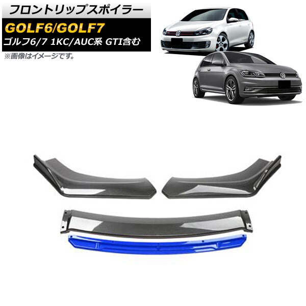 - フロントリップスポイラー フォルクスワーゲン ゴルフ6/ゴルフ7 1KC系/AUC系 GTI含む ブラックカーボン×ブルー PP製