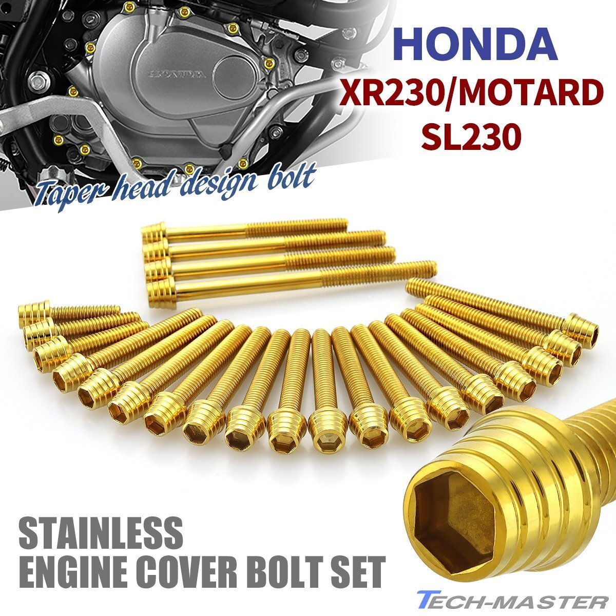 - XR230/モタード SL230 エンジンカバー クランクケース ボルト 23本セット ステンレス製 テーパーシェルヘッド ゴールドカラー TB6477