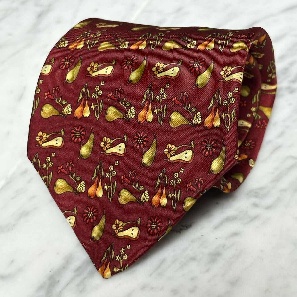 - 770円~ Ferragamo ネクタイ レッド ラ・フランス柄 ボタニカル柄 (R8)
