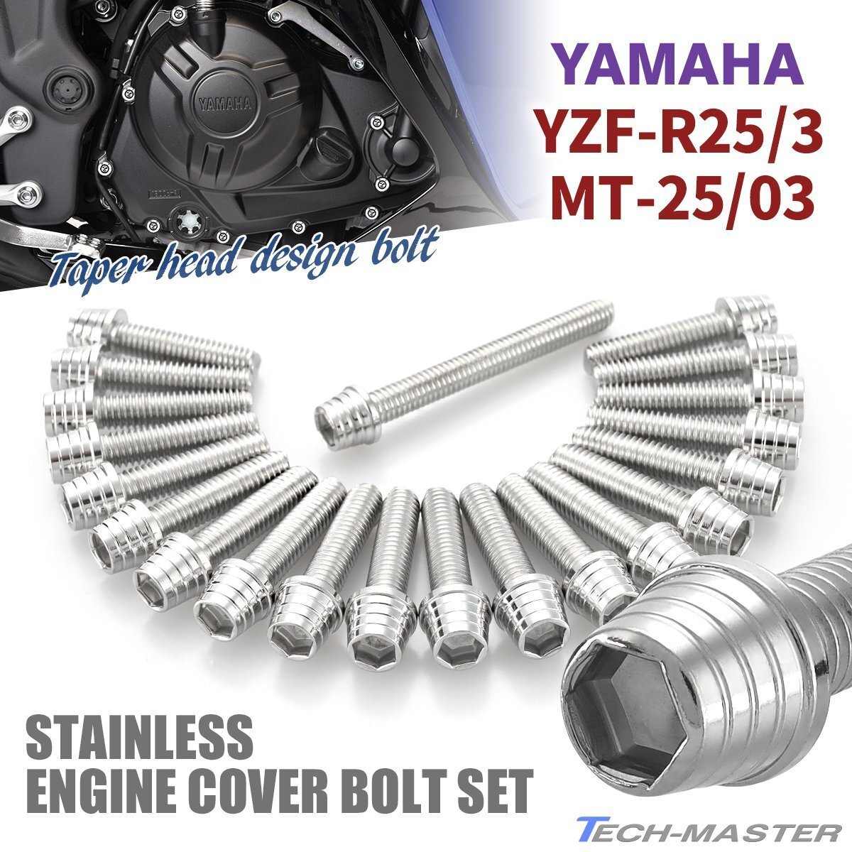 > YZF-R25/3 MT-25/03 エンジンカバー クランクケース ボルト 21本セット ステンレス製 ヤマハ車用 シルバーカラー TB7026