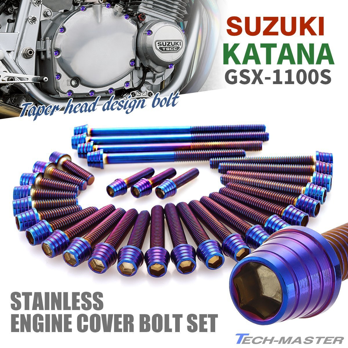 - KATANA GSX1100S エンジンカバー クランクケース ボルト 30本セット ステンレス製 テーパーシェルヘッド 焼きチタンカラー TB9278