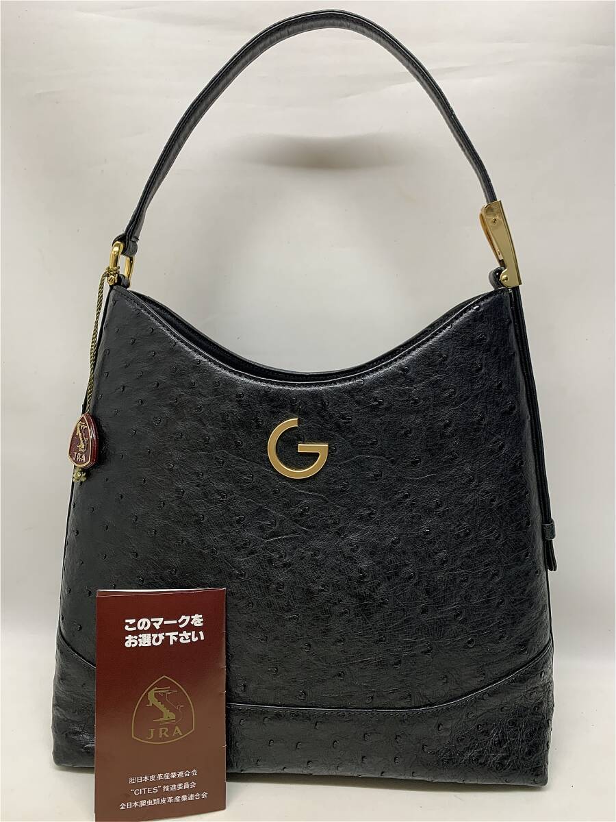- ほぼ未使用 GRES グレ JRA公認 オーストリッチ 2way ハンドバッグ ショルダーバッグ 肩掛けかばん ブラック 12時間以内に発送