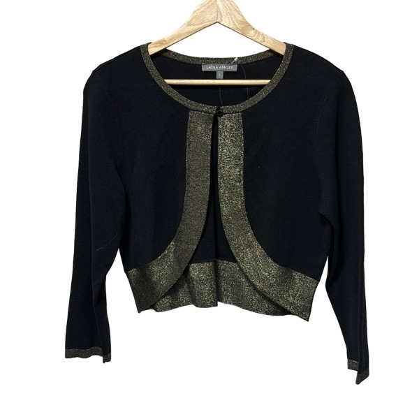 - ローラアシュレイ LAURAASHLEY カーディガン サイズL - 黒×ゴールド レディース 長袖 新品同様 トップス