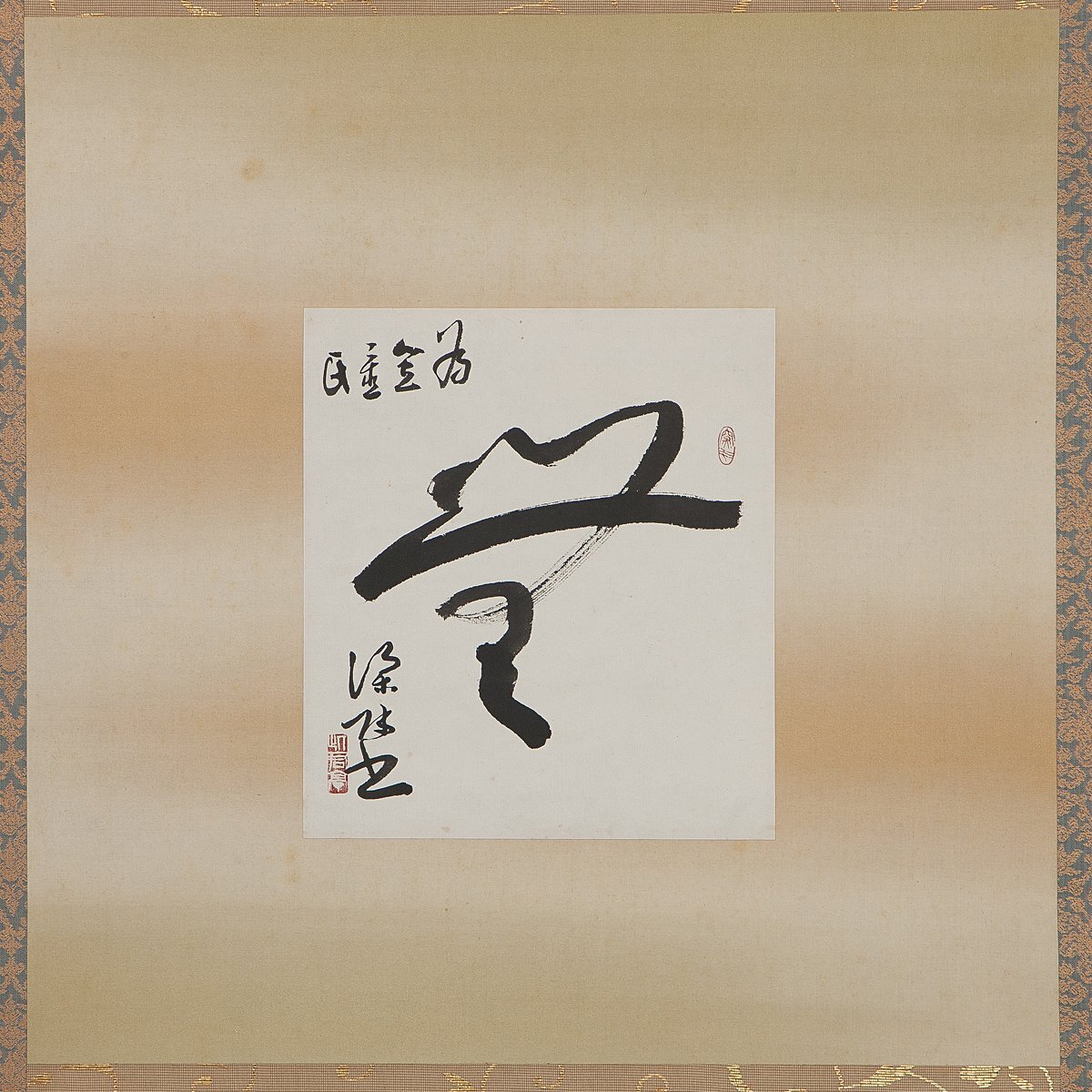 - 【五】伊東深水 一字書 『無』 紙本 墨 掛軸 共箱 二重箱 真作 / 師:鏑木清方 日本芸術院会員