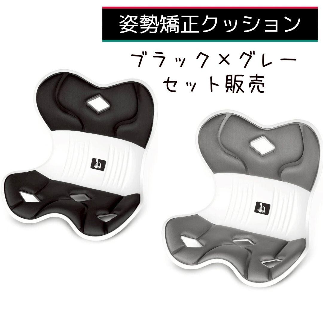 > 【セット売り】 姿勢矯正クッション ブラック×グレー 骨盤 チェア 腰サポート オフィス テレワーク 高反発メモリー綿 姿勢補正