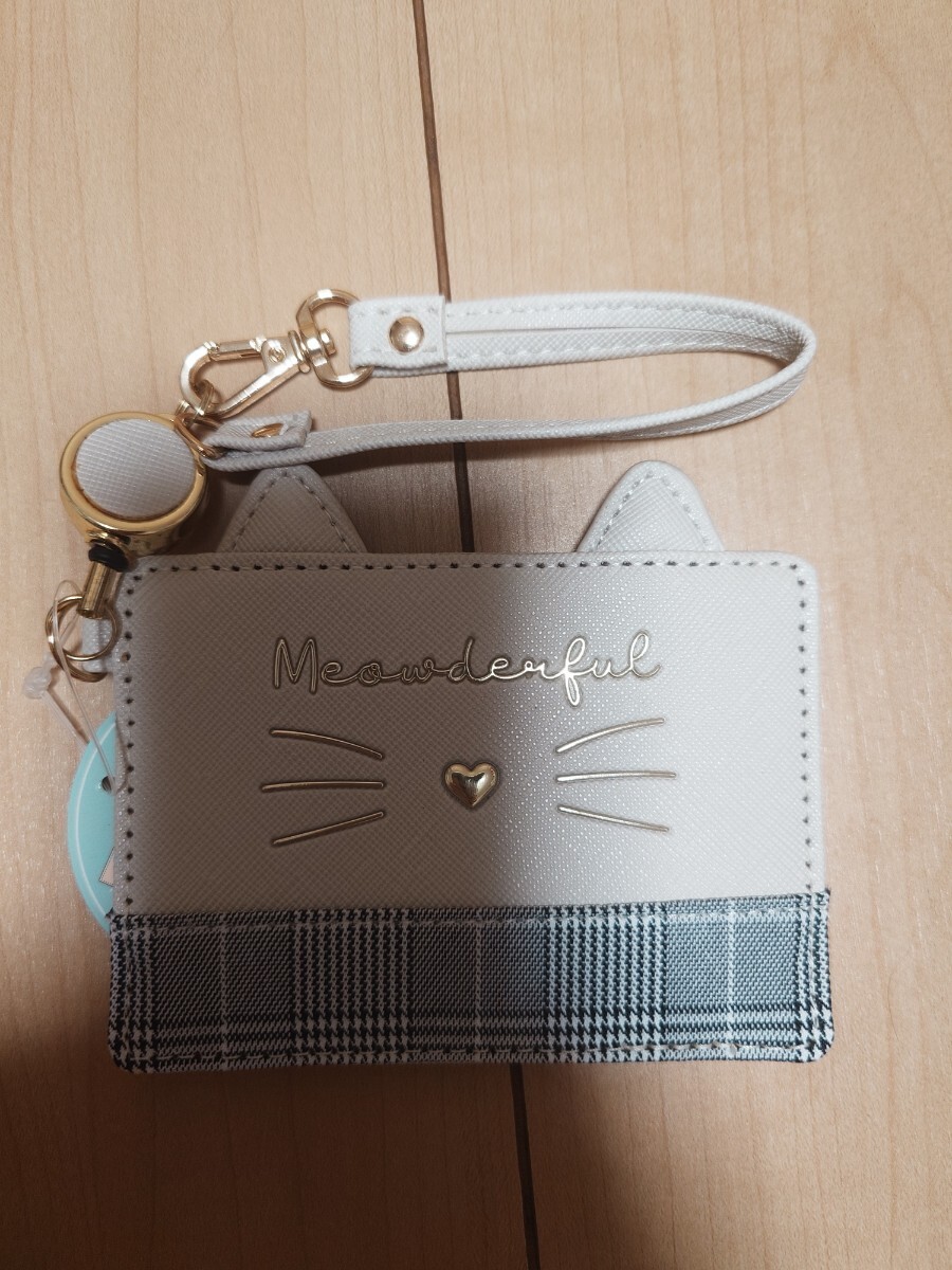 - 新品☆猫フェイス リール付きパスケース定期入れ レディース チェック
