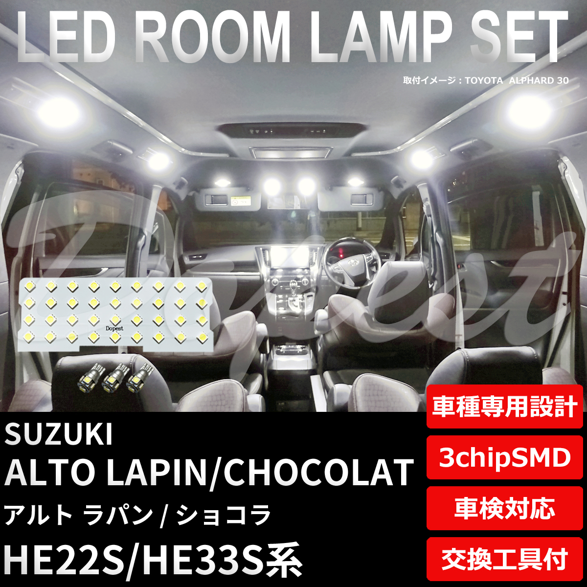 > アルト ラパン/ショコラ LEDルームランプセット HE22S/33S系 室内灯 6500K純白 専用設計 車検対応 車内灯