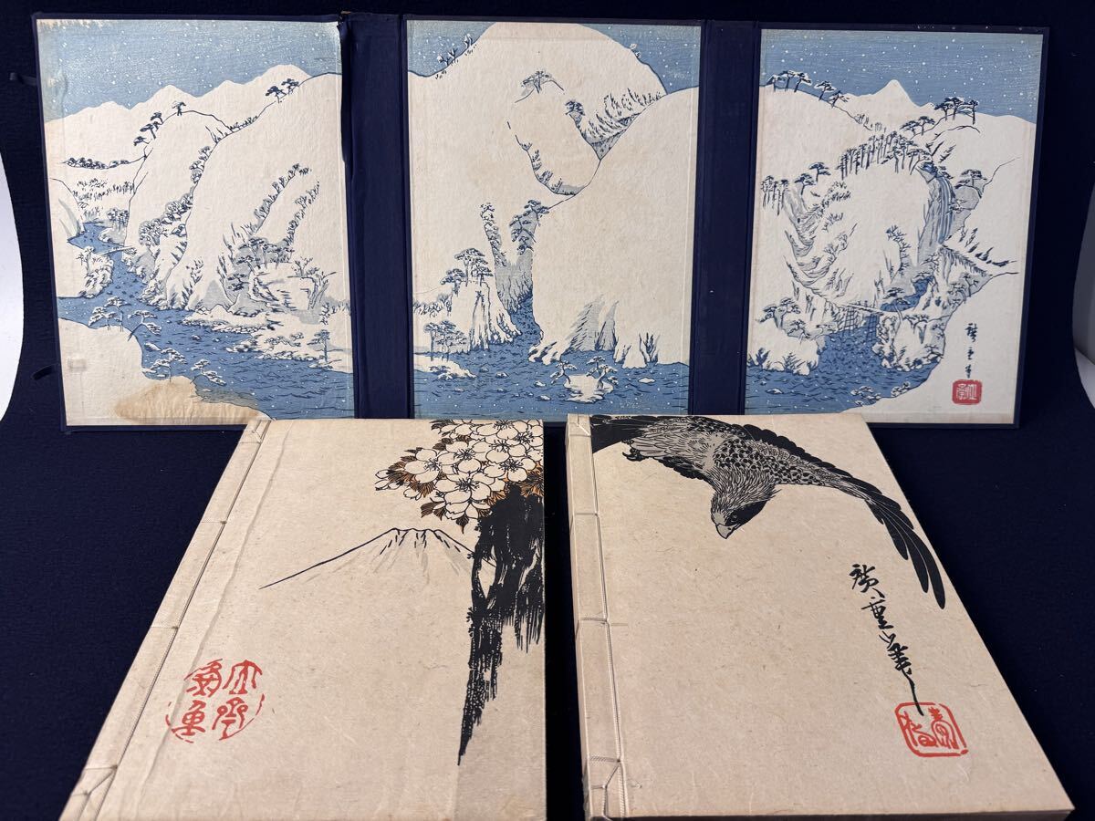 - 超希少 歌川廣重 昭和15年 力強い摺りの木版画入り 解説 歌川広重 和本 唐本 浮世 画冊 江戸 骨董 木版画 版画 ukiyoe