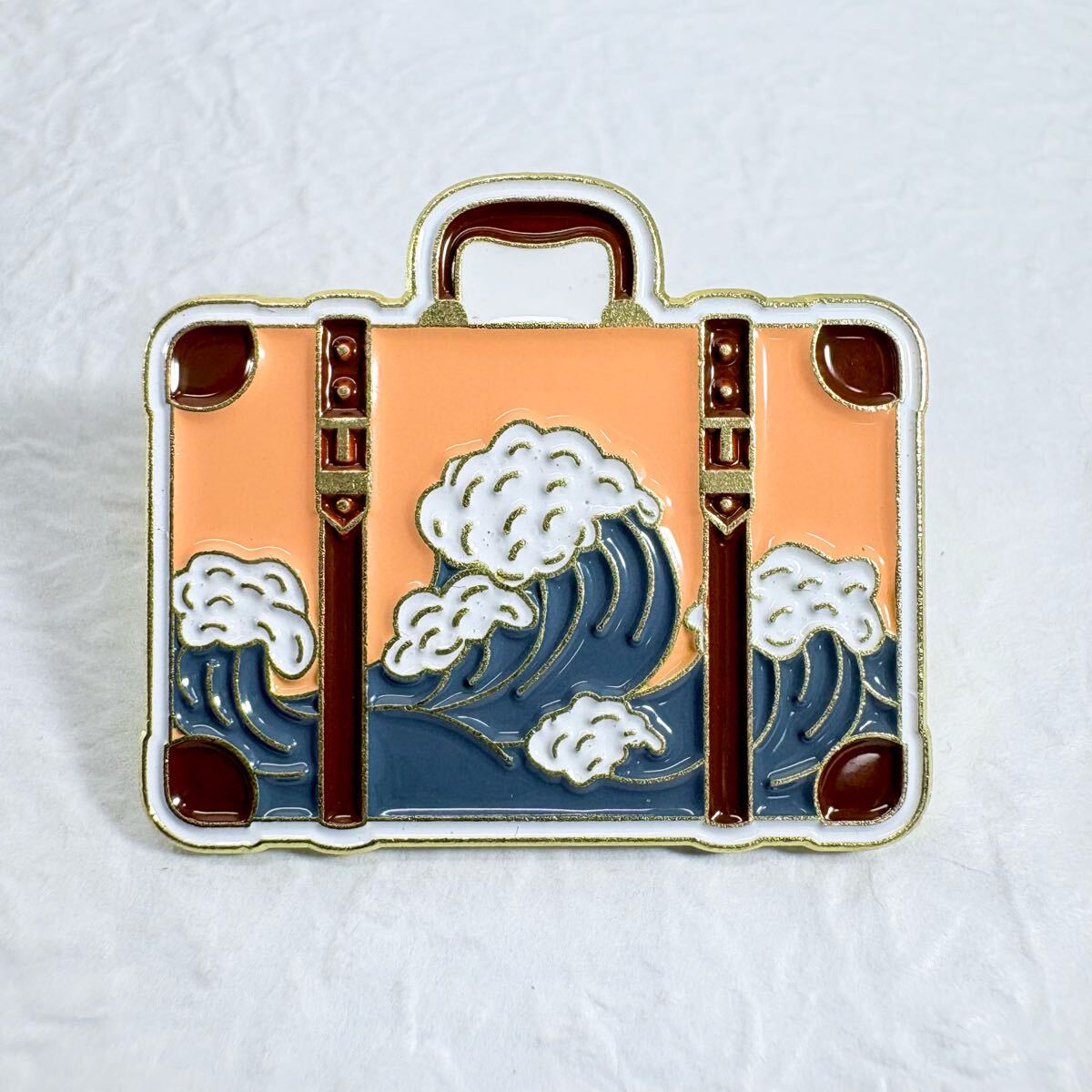 - 【ピンバッジ】カバンの中に見える津波 北斎 トランク 旅行