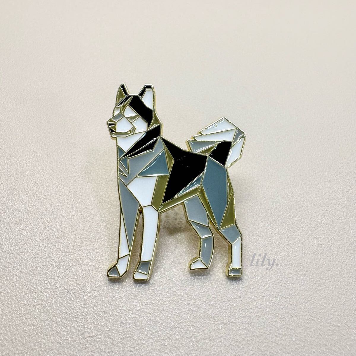 - 【ピンバッジ】シベリアンハスキー 折り紙 犬 わんこ 動物