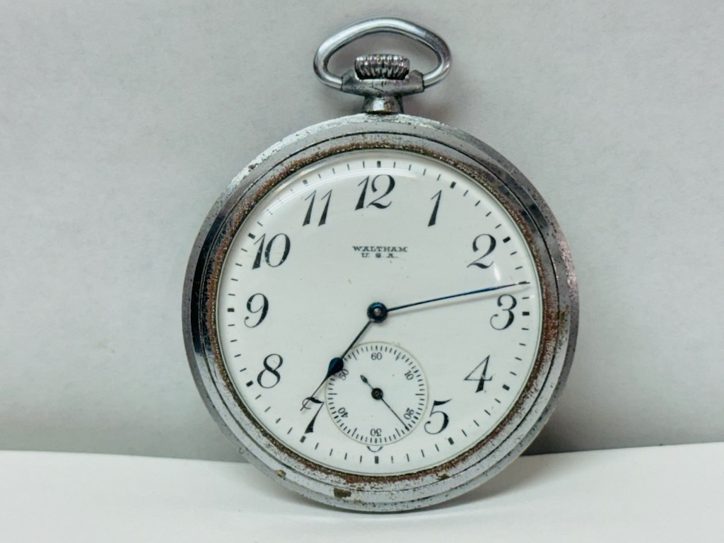 - アンティーク ヴィンテージ WALTHAM USA ウォルサム 手巻き 懐中時計 金報国 皇紀2599刻印 可動品 程度良です