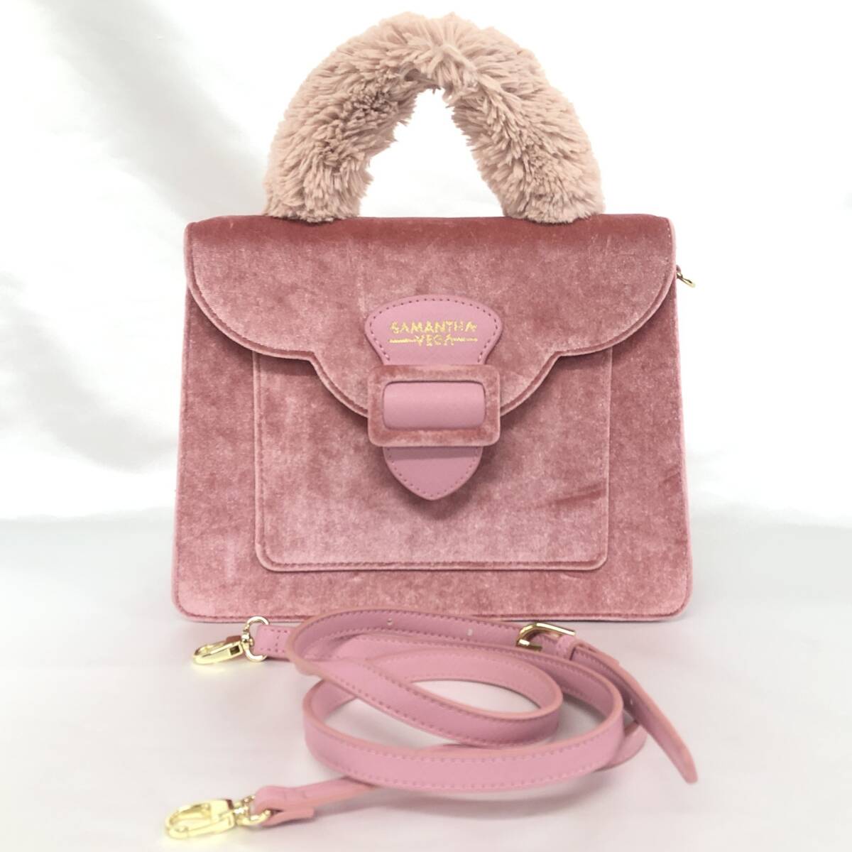- Samantha Vega サマンサベガ ベロア 2way バッグ 持ち手ファー ストラップ付 ハンドバッグ ショルダーバッグ ピンク