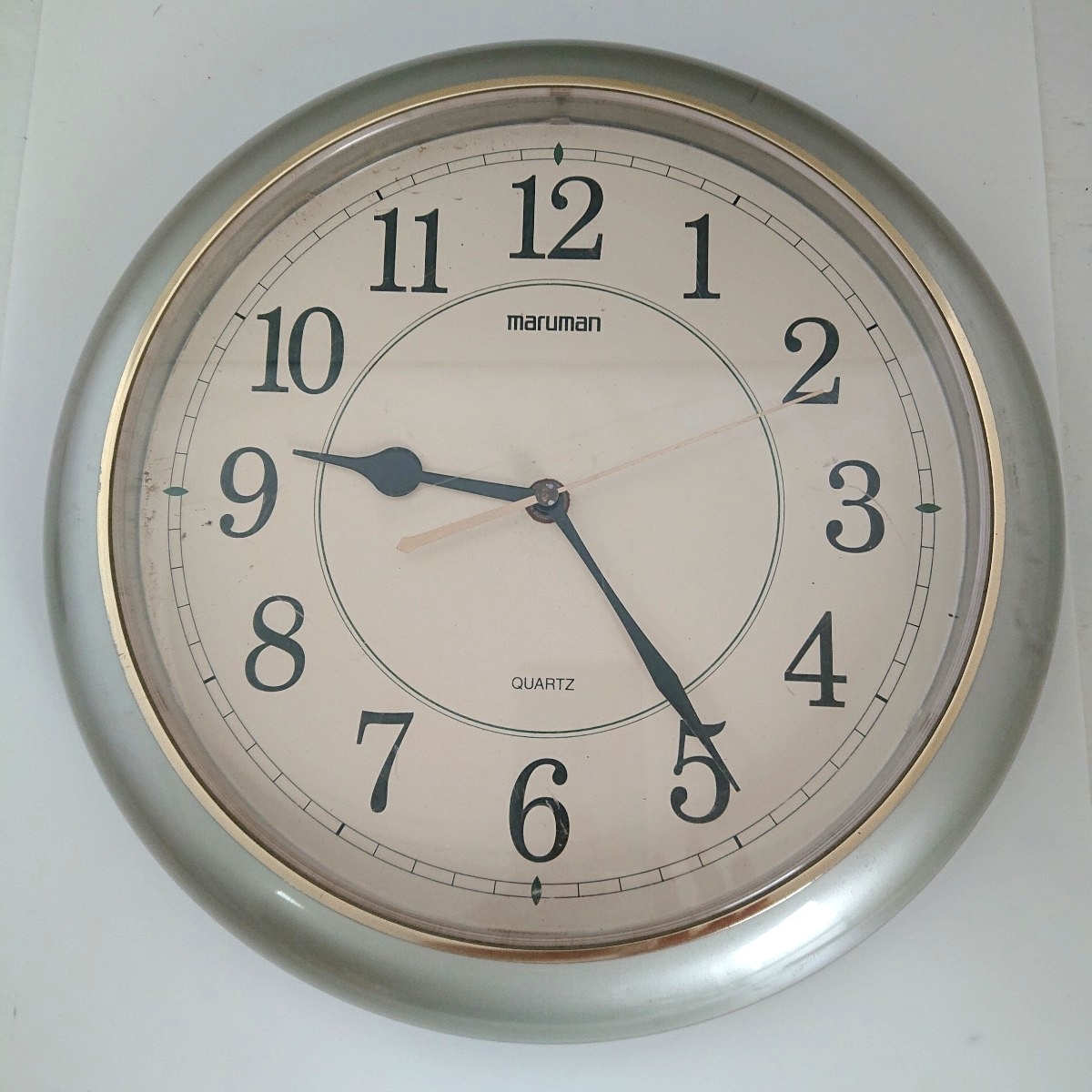 - 【掛け時計】maruman 壁掛け時計 МPU−108 シルバー調フレーム 箱無し アナログ クオーツ 当時物 現状品 ぷらみ 0911 61