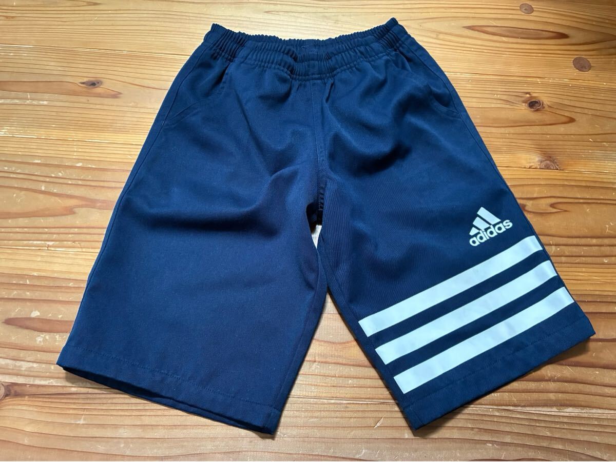 > 送料込み!! adidas ハーフパンツ 美品 140 アディダス スポーツパンツ 紺 三本ライン バスケット ランニング スポーツウェアー