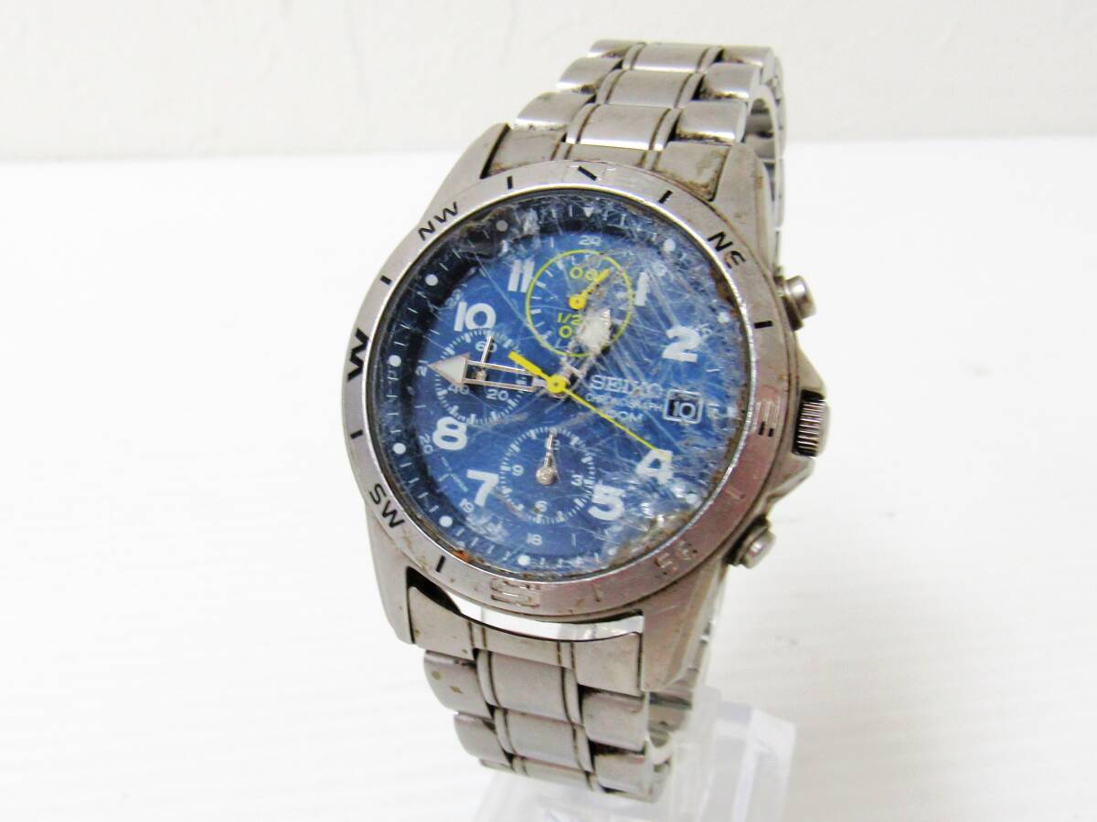 > SEIKO セイコー クロノグラフ クオーツ 7T92-0DX0 グリーン×イエロー クオーツ 腕時計 ジャンク品 電池切れ 不稼働品 HG0906