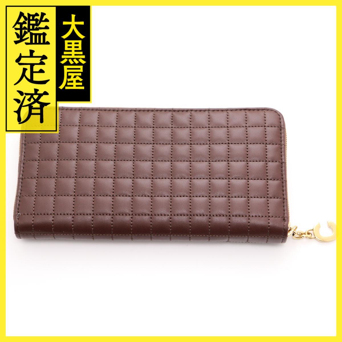 - CELINE セリーヌ Cチャーム ラージジップドウォレット ダークブラウン レザー
