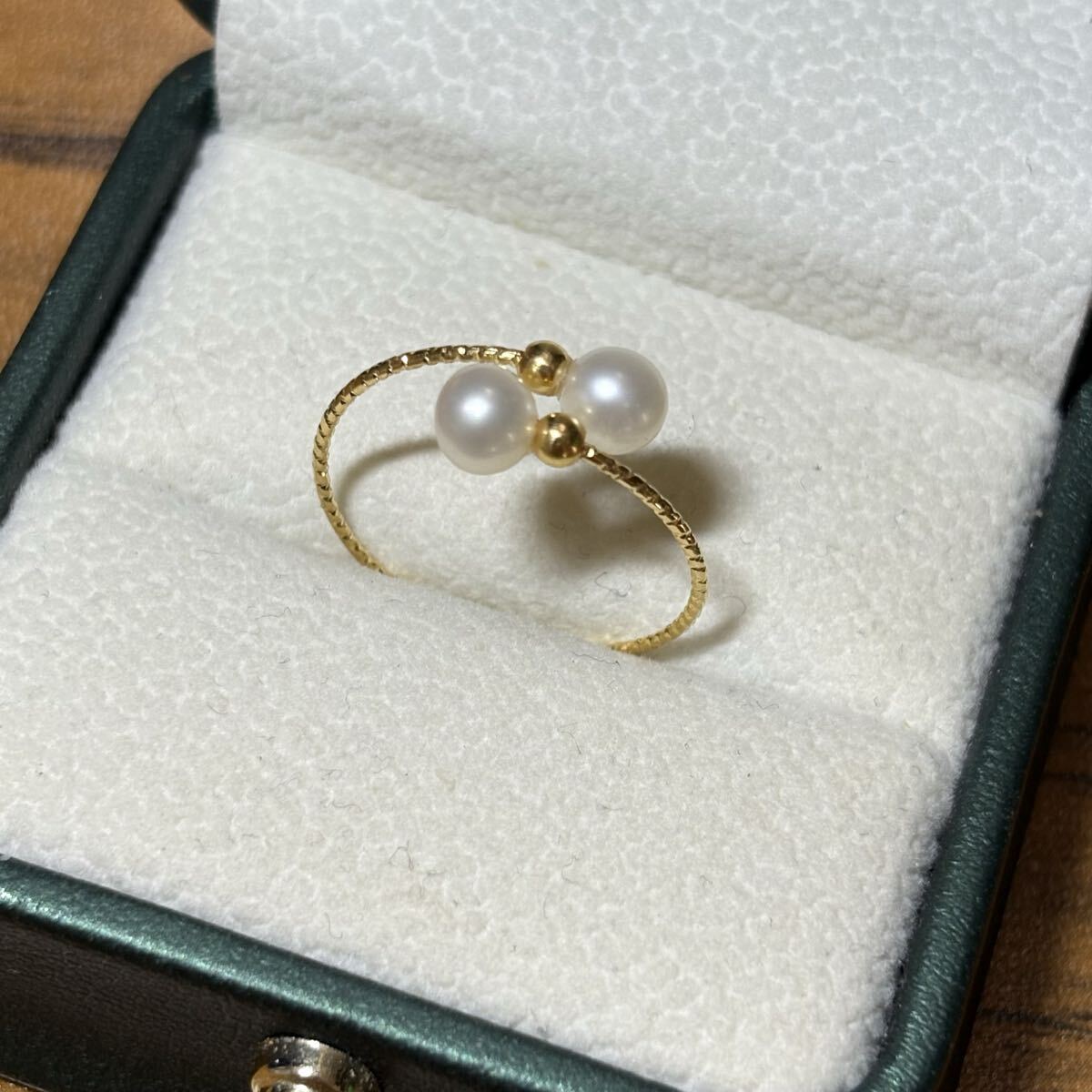 - R39 K18 ベビーパール 淡水真珠 リング au750刻印 指輪