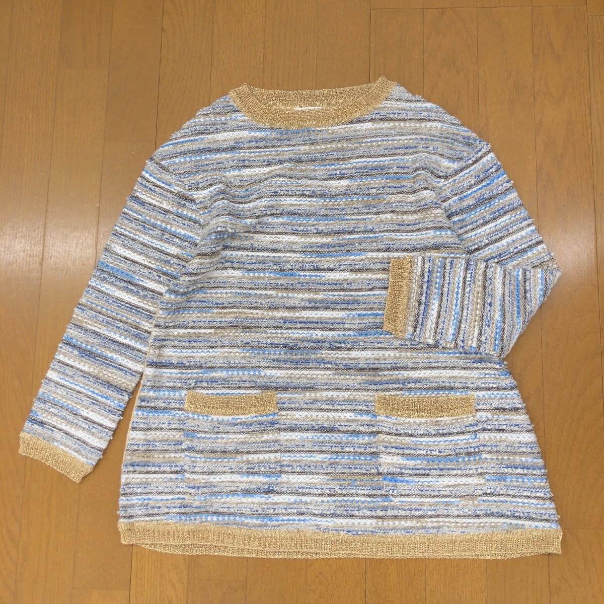 > 美品 49AV. junko shimada ジュンコシマダ ラメ入 切替 ツイード ニット セーター 38(M) 七分袖 カットソー 国内正規品 レディース 婦人