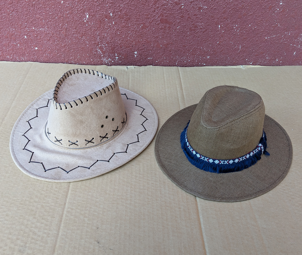 - 2点セット 帽子 中折れハット メンズ レディース 男女兼用 キャップ キャップ ソフト帽 麦わら帽 ハット ブラウン ベージュ 001