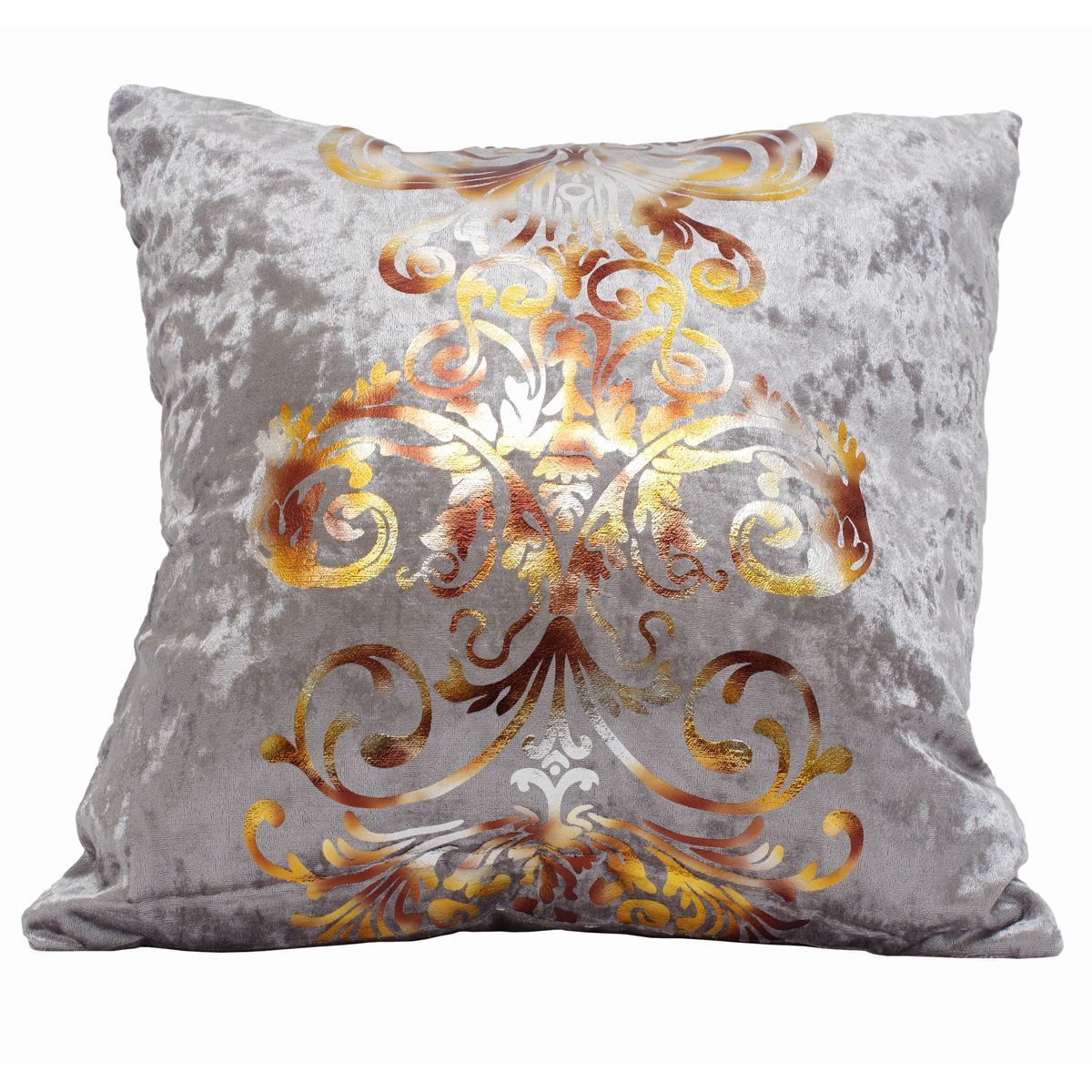 > 【送料無料】 ゴージャス クッションカバー グレー 灰色 2枚セット 45×45cm ベルベット おしゃれ クラシック モダン ゴールド 金色