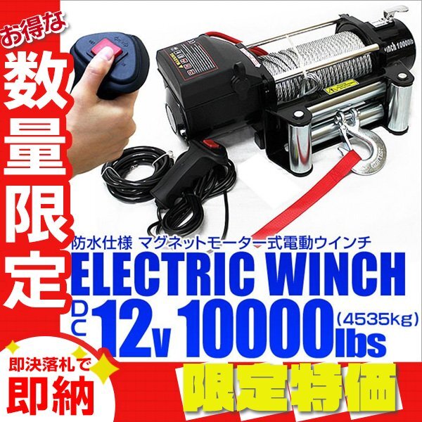 > 【限定セール】電動ウインチ 有線コントローラー 最大牽引 10000LBS 4535kg DC12V 電動 ウインチ 引き上げ機 牽引 防水 付属品フルセット