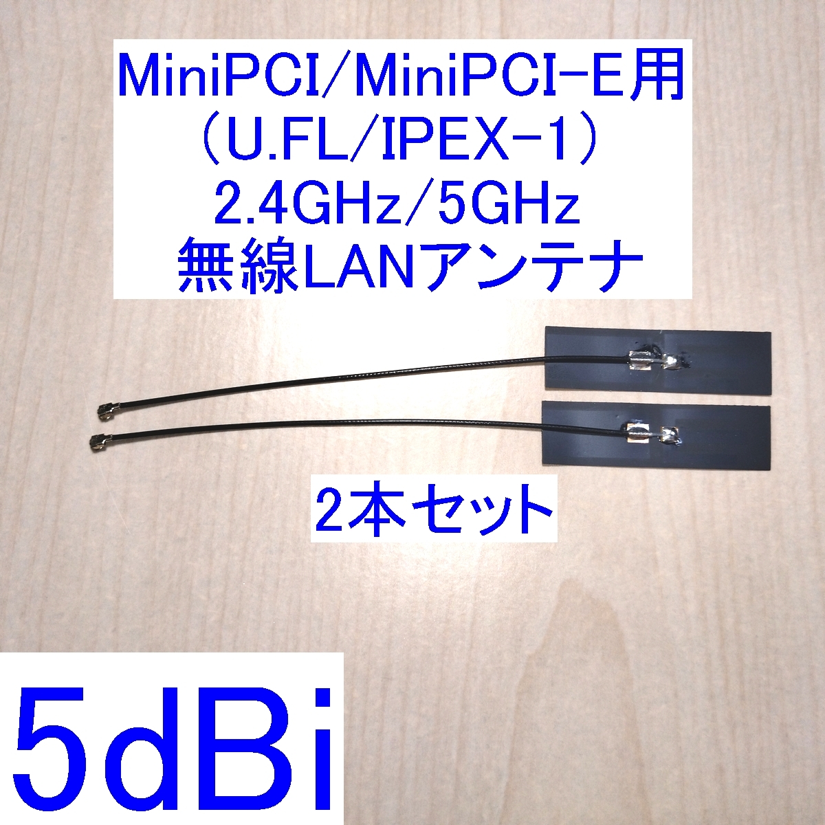 - 【送料込/即決】5dBi 2.4GHz/5GHz対応 U.FL/IPEX-1 MiniPCI/MiniPCI-E用内蔵無線LANアンテナ 2本セット 新品 WiFi(Wi-Fi)/Bluetoothに