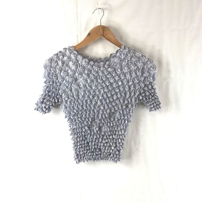 - カットソー ポップコーン生地風 伸縮性 グレー M-Lサイズ 2025082700219