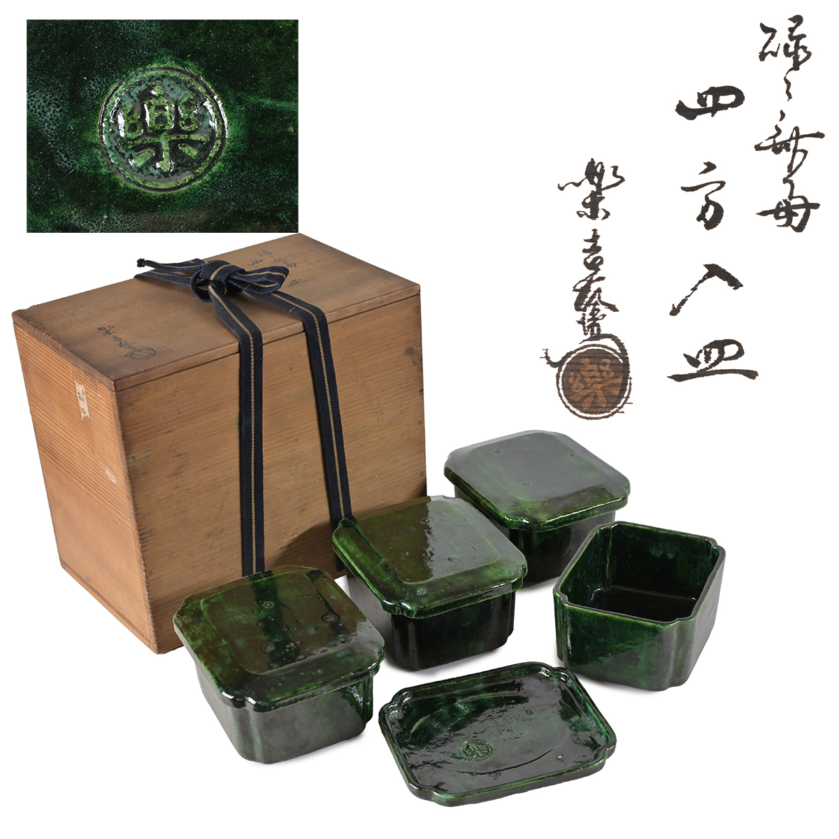 - 楽吉左衛門 四方入皿 向付 碌々斎好 共箱 ☆ 茶道具 茶懐石 懐石料理 茶碗 ma823