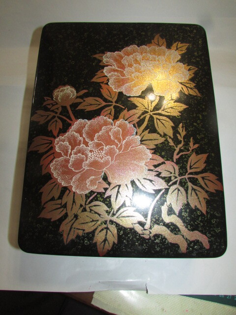 - 即決商品(会津若松・旧家・蔵出し)昭和レトロ ( 古い時代の文箱・豪華な牡丹模様 )貴重・珍品