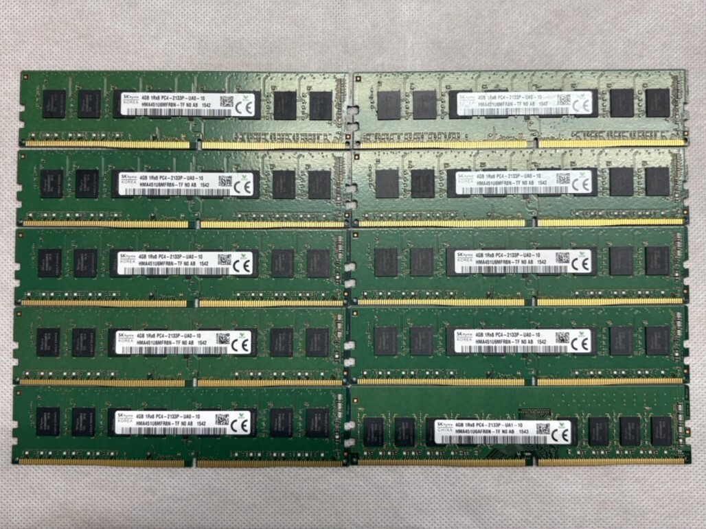 | SKhynix デスクトップパソコン用 メモリ DDR4 PC4-2133P 1Rx8 4GB x 10枚セット | | | こちらの商品は、実働機より取り出し、保管していたメモリになります。 動作未確認のため、動作保証はいたしかねますので気になる方はご遠慮ください。