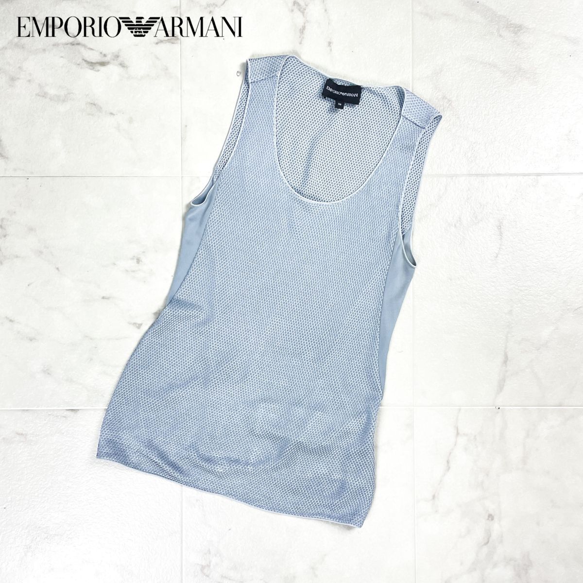 - EMPORIO ARMANI エンポリオアルマーニ 切替ノースリーブ タンクトップ トップス レディース サックスブルー サイズ38*GD1186