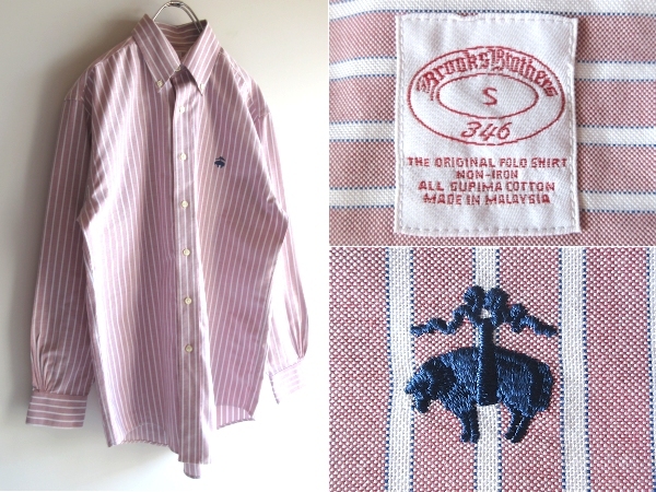 > 00sビンテージ Brooks Brothers 346 ブルックスブラザーズ 羊ロゴ刺繍 スーピマコットン ストライプ オックスフォード BDシャツ S ネコポス