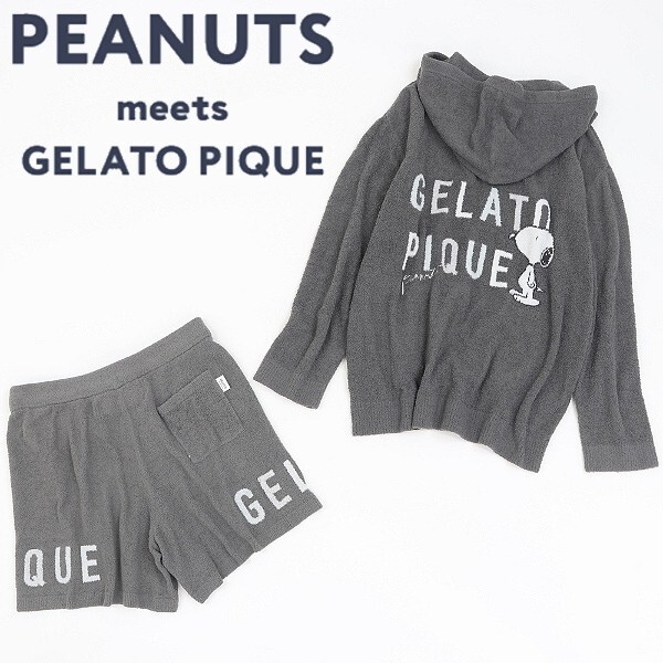 - 【HA305】◆PEANUTS meets GELATO PIQUE ジェラートピケ × ピーナッツ スヌーピー ロゴ JQD パーカー&パンツ セットアップ ルームウェア