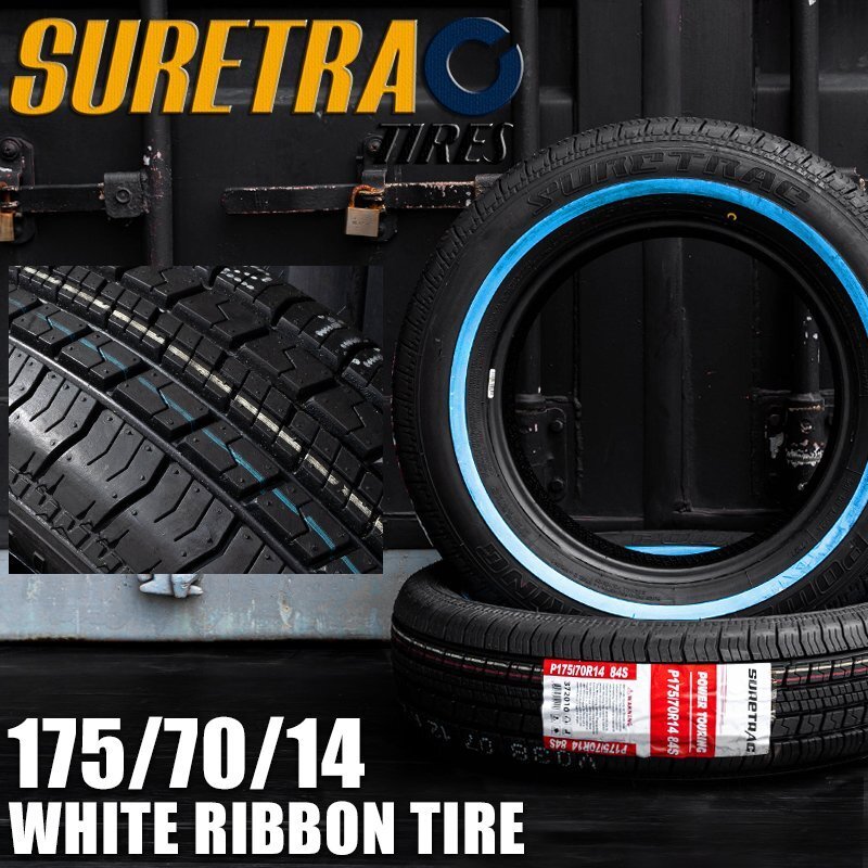 > ●ティスファクトリー● SURETRAC POWER TOURING シュアトラック スキニー ホワイトリボンタイヤ 175/70R14 2本 ワイヤーホイールに最適