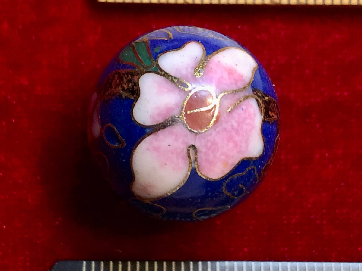> ¶!¶ 有線七宝焼ワールド - 特級品特大丸1個 ¶!¶ Φ20㎜ 金線に藍色釉ピンク花祥雲紋様 手作り 手芸 工芸 インテリア ペンダント