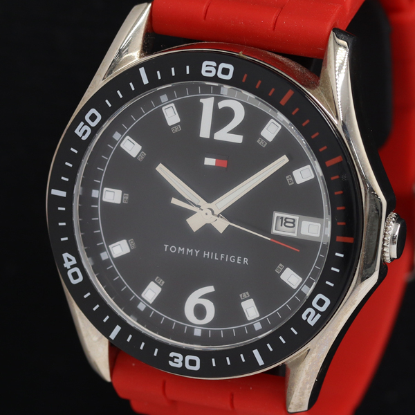 > 稼働 良品 トミーヒルフィガー TH.01.1.37.0939 QZ 黒文字盤 デイト メンズ腕時計 KRH 2000000 NSK